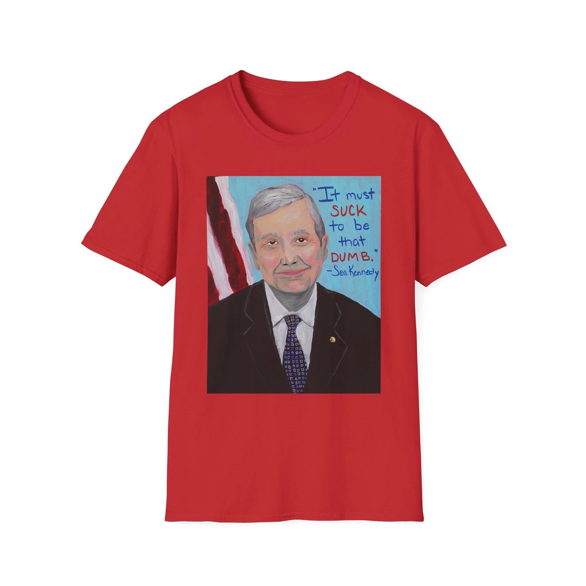 A lightweight, everyday tee that wears like an old favorite and carries a bold, illustrated statement on the front. The soft ring-spun cotton feels smooth against skin while the classic crew neck and straight fit make it easy to layer under a jacket or wear solo. The artwork — a hand-painted, portrait-style illustration with handwritten text — adds a conversational, slightly irreverent voice to casual outfits. Wear it to rallies, art shows, or laid-back hangouts when you want your clothing to start a conversation without shouting. The natural and heather options give subtle texture; the white version keeps the illustration crisp and central. Built to last with stabilized seams and a comfortable tear-away label, this tee is meant for repeated wear and easy care.