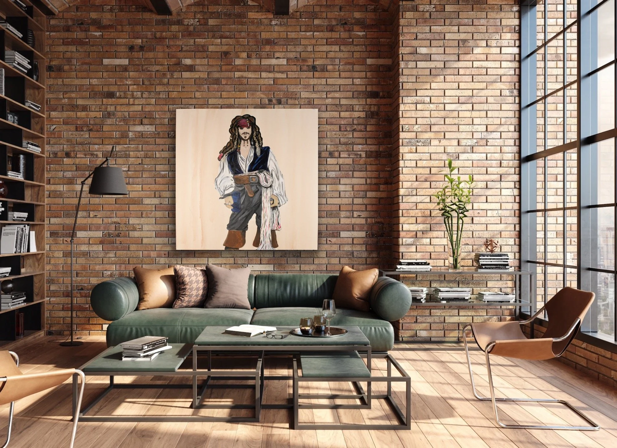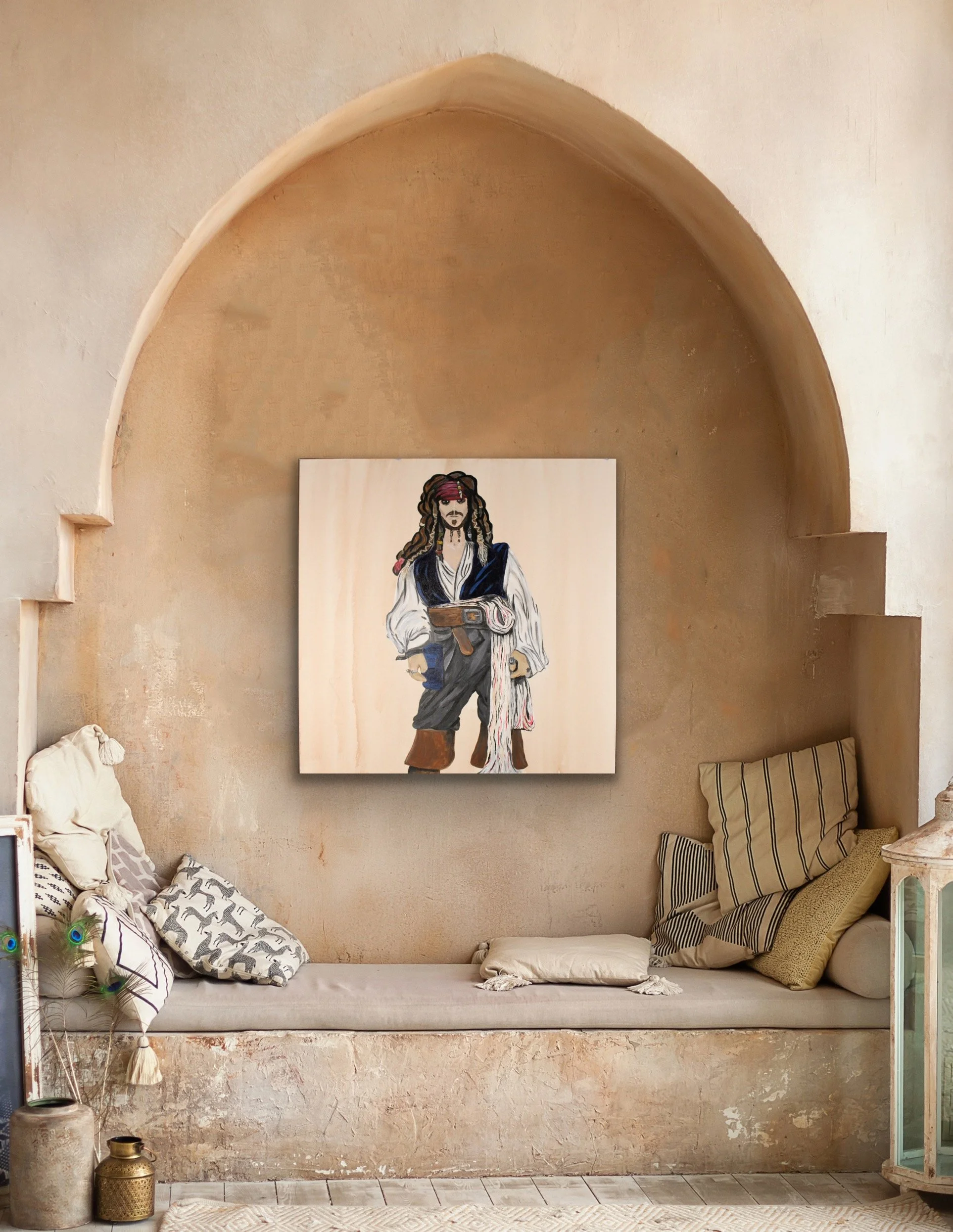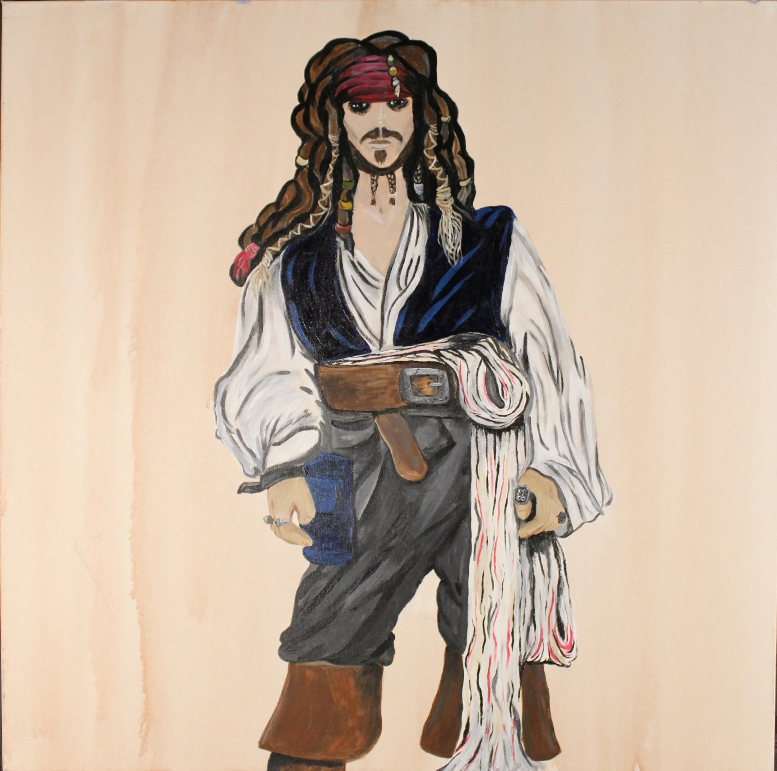 Originals & Commissions › A tribute to "Jack Sparrow" A tribute to "Jack Sparrow" $1,000.00 Large gallery wrapped canvas featuring an abstract likeness to Jack Sparrow. Hand painted, and varnished. Not framed. Large gallery wrapped canvas featuring an abstract likeness to Jack Sparrow. Hand painted, and varnished. Not framed. Add To Cart Added!