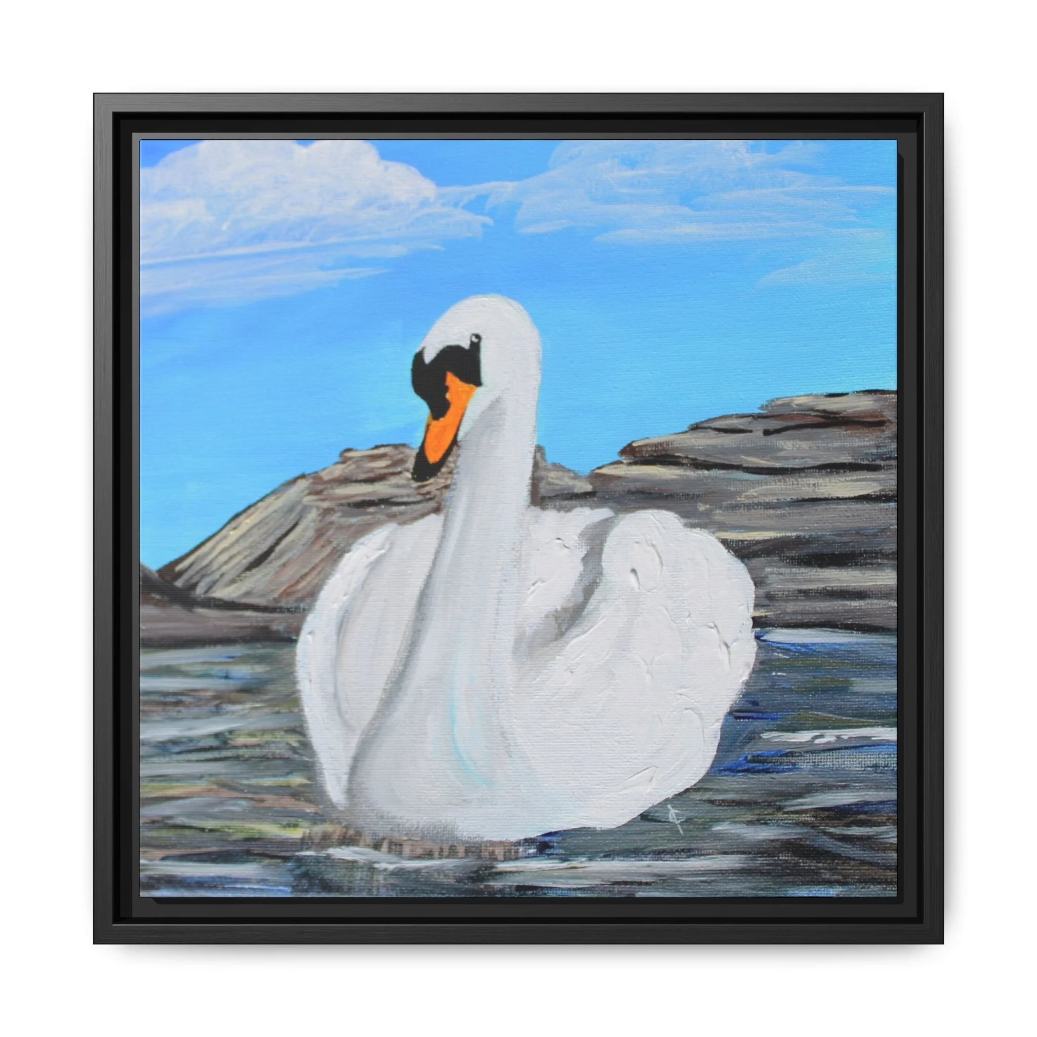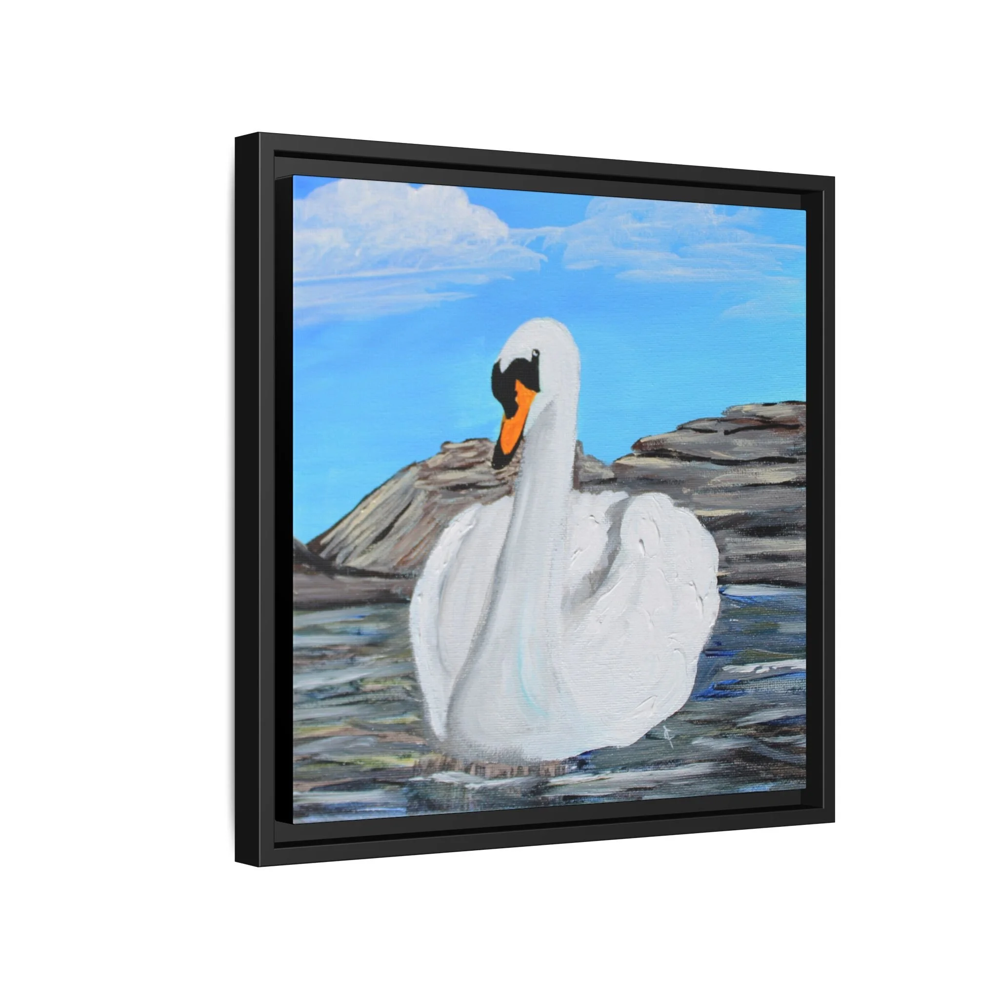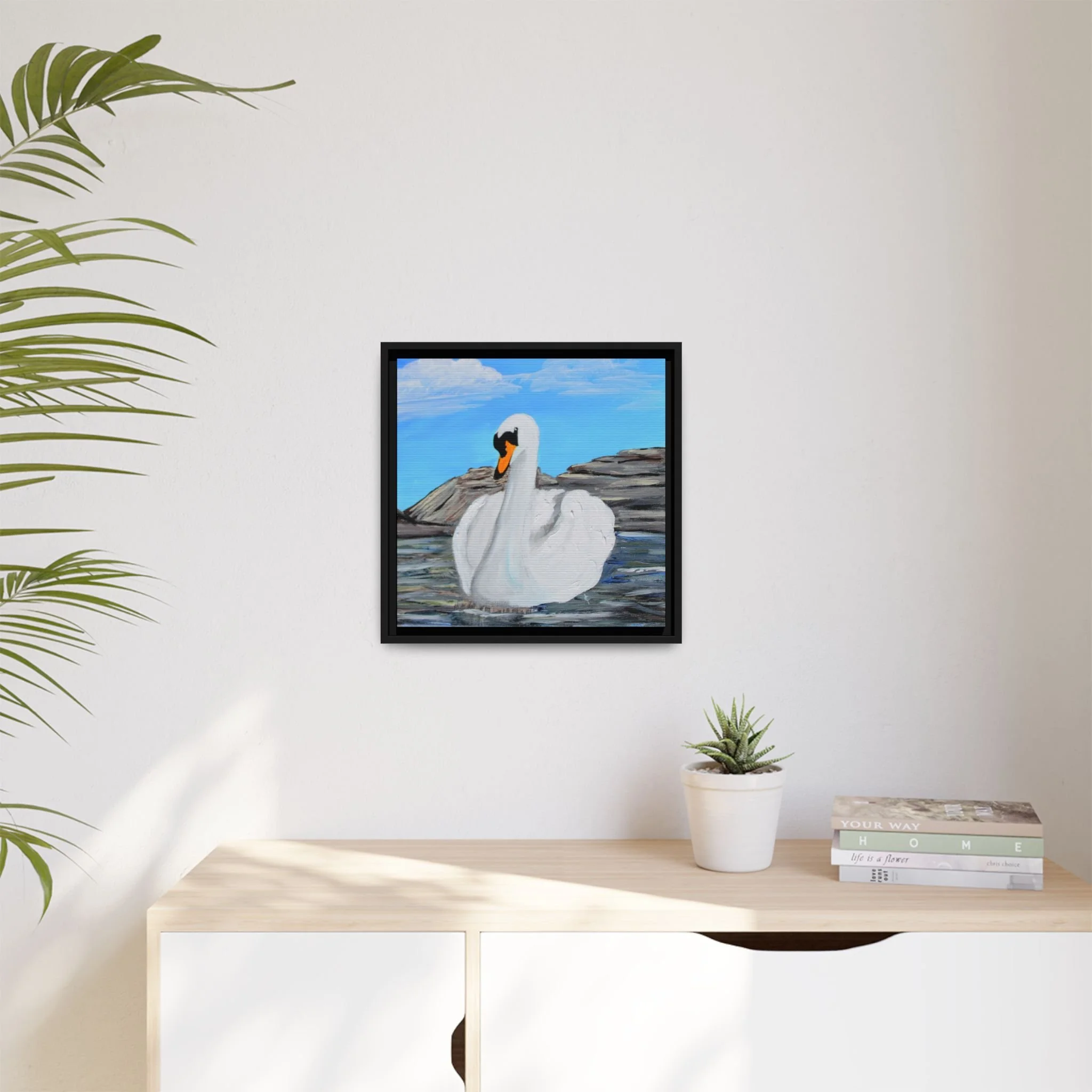 A framed matte canvas print that brings quiet lake-side grace into any room. A soft, painterly swan glides against pale blue skies and rocky shores, rendered with vibrant, archival inks that preserve brushstroke detail and color depth. The slim pine frame gives it a clean, gallery-ready silhouette while the unique JONDO coating and latex inks ensure a non-toxic, long-lasting finish. Hang it in an entryway, above a mantel, or in a cozy reading nook to introduce a calm, reflective moment to your everyday life.
